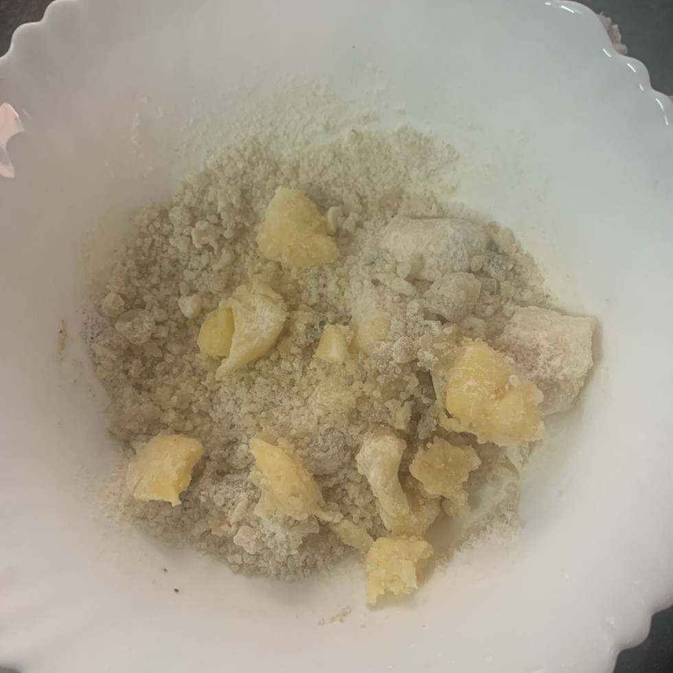 For crumble mix butter, flour, sugar and cinnamon using a fork or hands. Sprinkle 1 tbsp of the mix on top of each muffin.